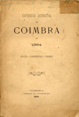 EXPOSIÇÃO DISTRICTAL DE COIMBRA EM 1884. Revista – Conferencias – Premios. Coimbra. Imprensa da Universidade. 1884. In-8.º gr. de XX-189-III-27-I págs. E.