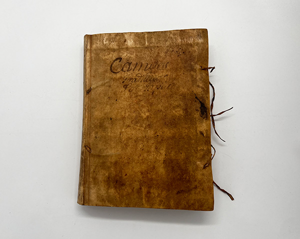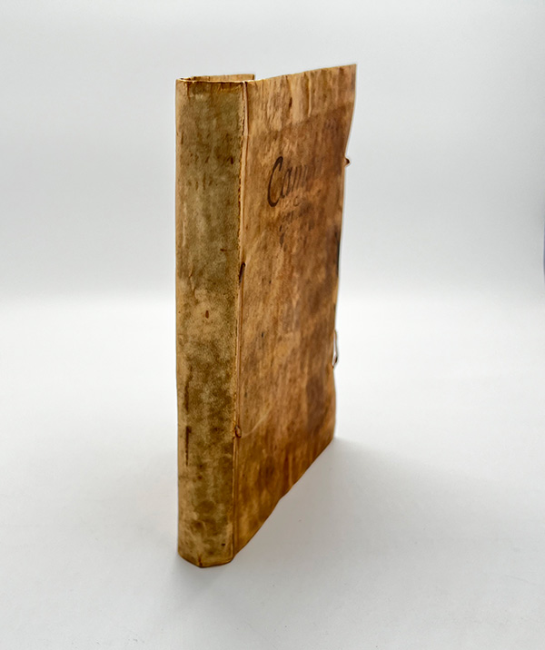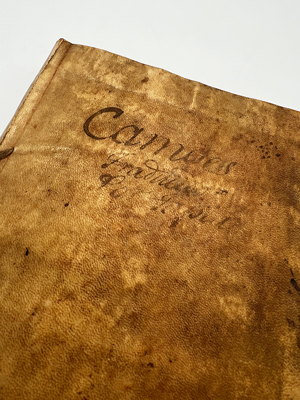 Encadernação original em pergaminho bem conservada, restaurada com novas guardas e com atilhos. Na pasta da frente manuscrita com os seguintes dizeres: “Camoes // Tradução // Por Tapia”.